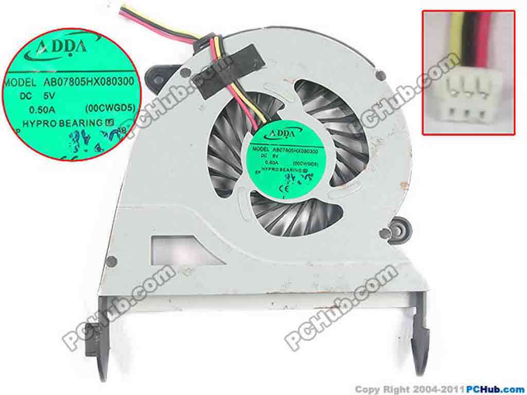 AB07805HX080300, 00CWGD5, DC5V 0.50A, Bare fan