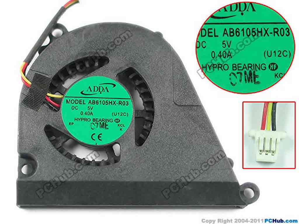 ADDA AB6105HX-R03 Cooling Fan U12C, 5V 0.40A, w20x3x3