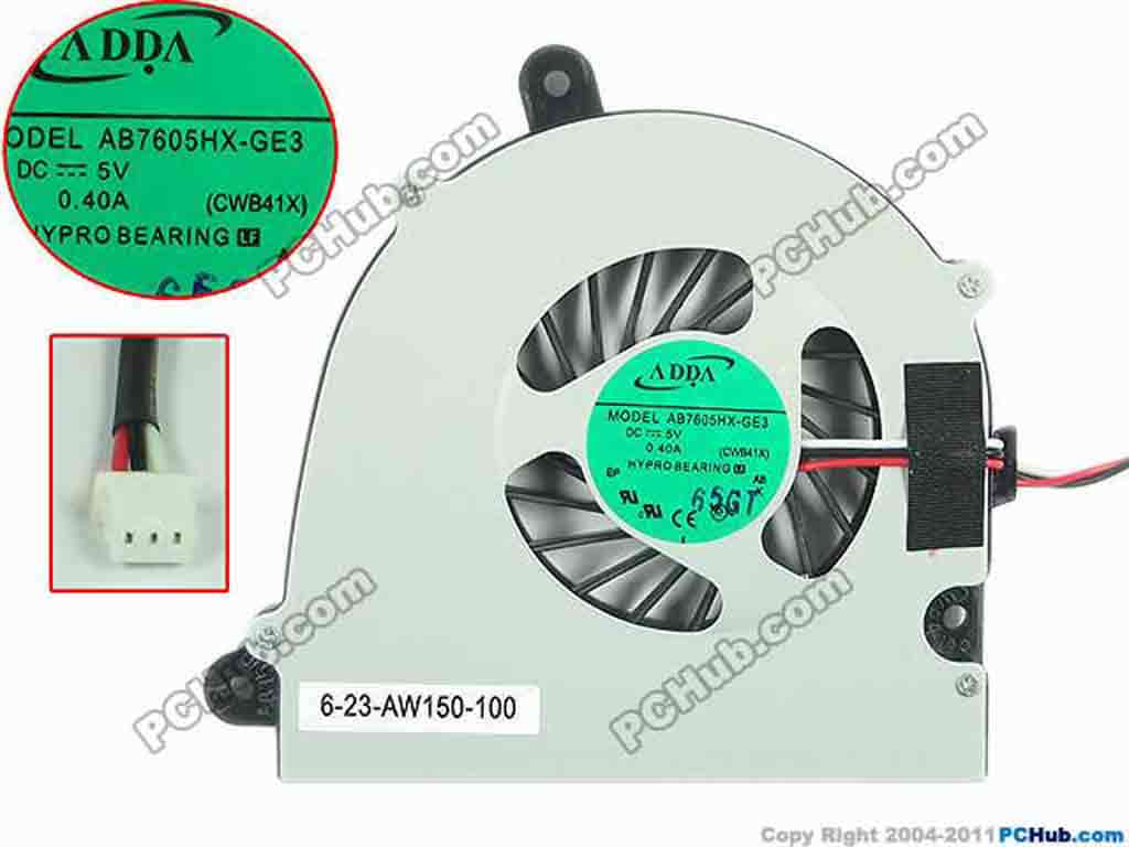 AB7505HX-GE3, CWB4100 DC 5V 0.40A, Bare fan