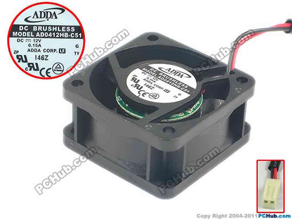 ADDA AD0412HB-C51 Server - Square Fan S, sq40x40x20, 2-wire, 12V 0.15A