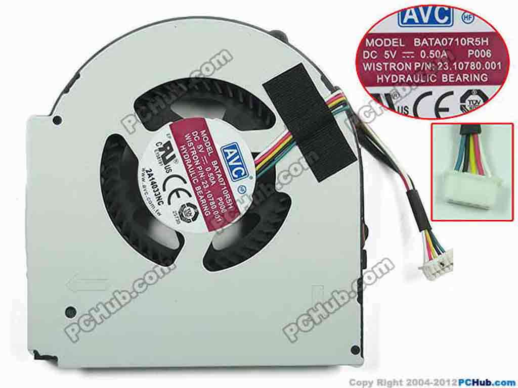 AVC BATA0710R5H Cooling Fan P006, w60x5x5, 5V 0.50A, Bare fan