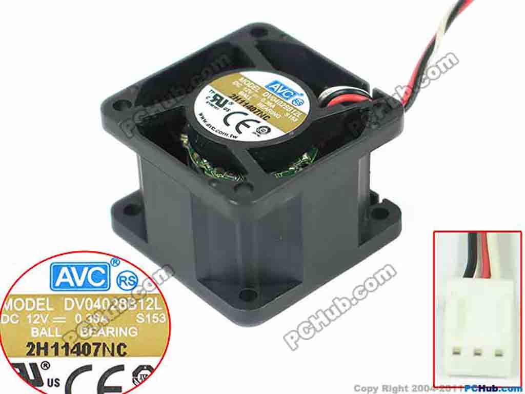 AVC DV04028B12L Server - Square Fan S153. sq40x40x28mm, 3-wire, 12V 0.36A
