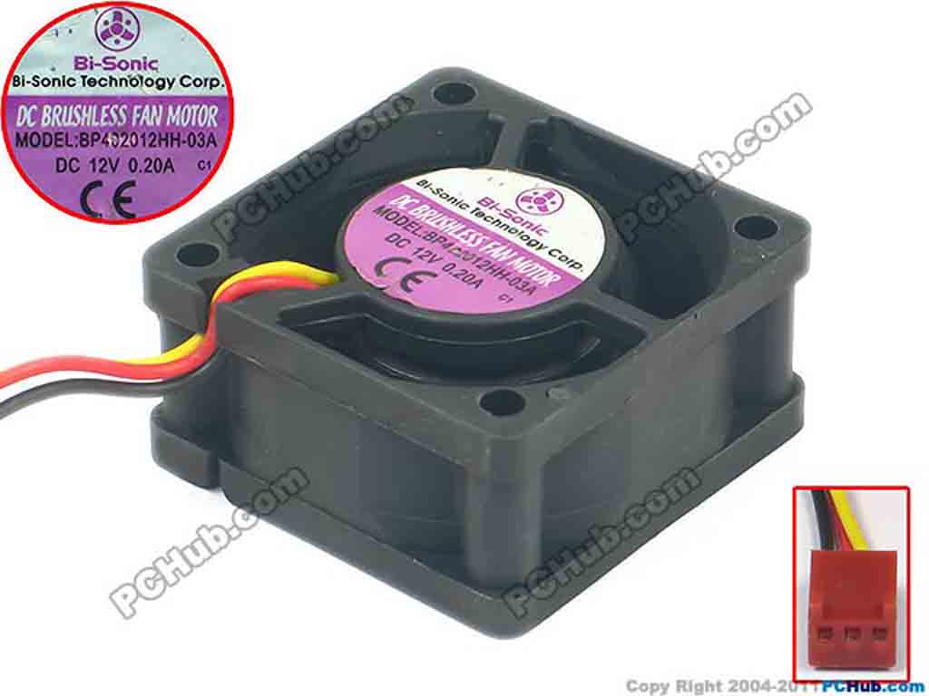 Bi-Sonic BP402012HH-03A Server - Square Fan sq40x40x20, w180x3x3, 12V 0.20A
