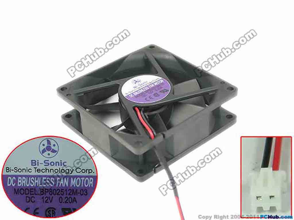 Bi-Sonic BP802512M-03 Server - Square Fan sq80x80x25mm, 2-wire, 12V 0.20A
