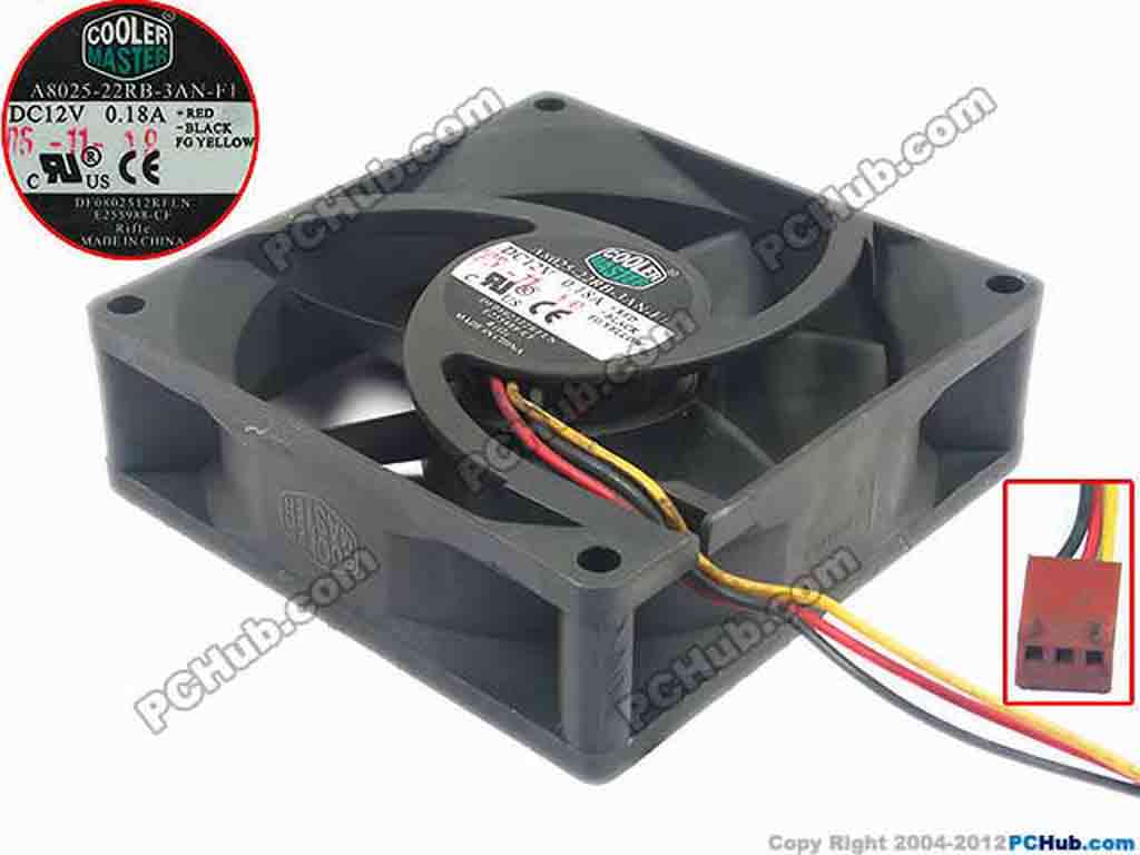 Cooler Master A8025-22RB-3AN-F1 Server - Square Fan sq80x80x25, 3-wire, 12V 0.18A