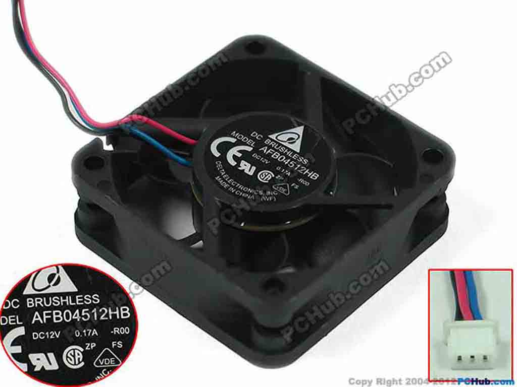 Delta Electronics AFB04512HB Server - Square Fan R00, sq45x45x15mm, 3-wire, 12V 0.17A