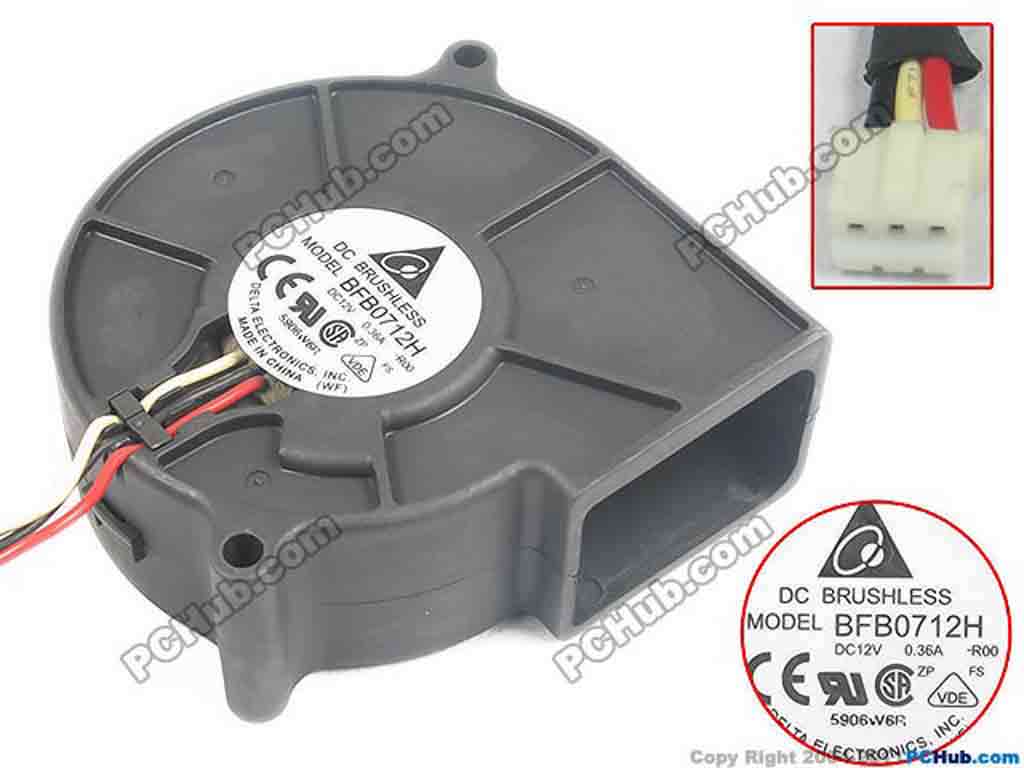 Delta Electronics BFB0712H Server - Blower Fan -R00, bw75x75x30, w80x3x3, 12V 0.36A