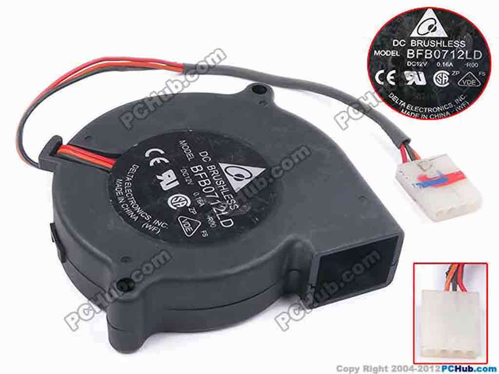 Delta Electronics BFB0712LD Server - Blower Fan -R00, bw76x70x20, w175x3x4, 12V 0.16A