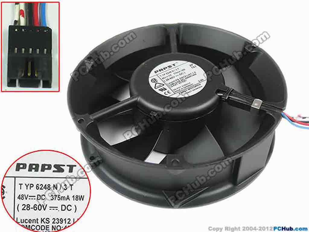 ebm-papst TYP 6248 N/3T Server - Round Fan dia172x172x50mm, w180x5x5, 48V 18W