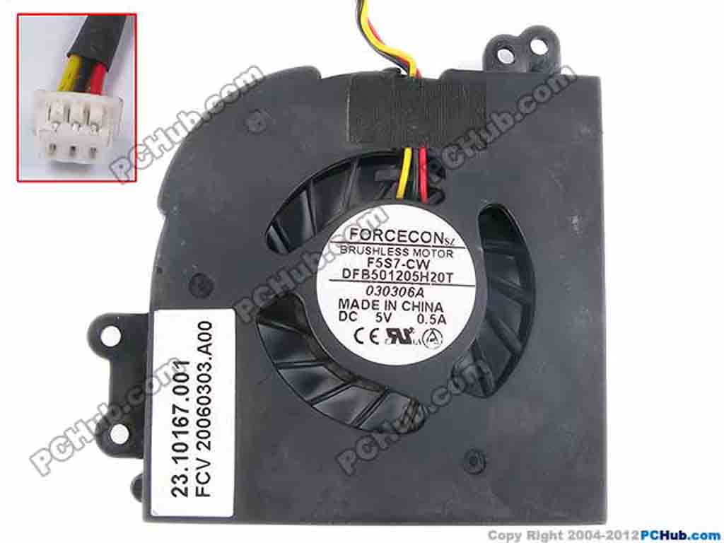 Forcecon DFB501205H20T Cooling Fan 23.10167.001, w80x3x3, 5V 0.5A, Bare Fan