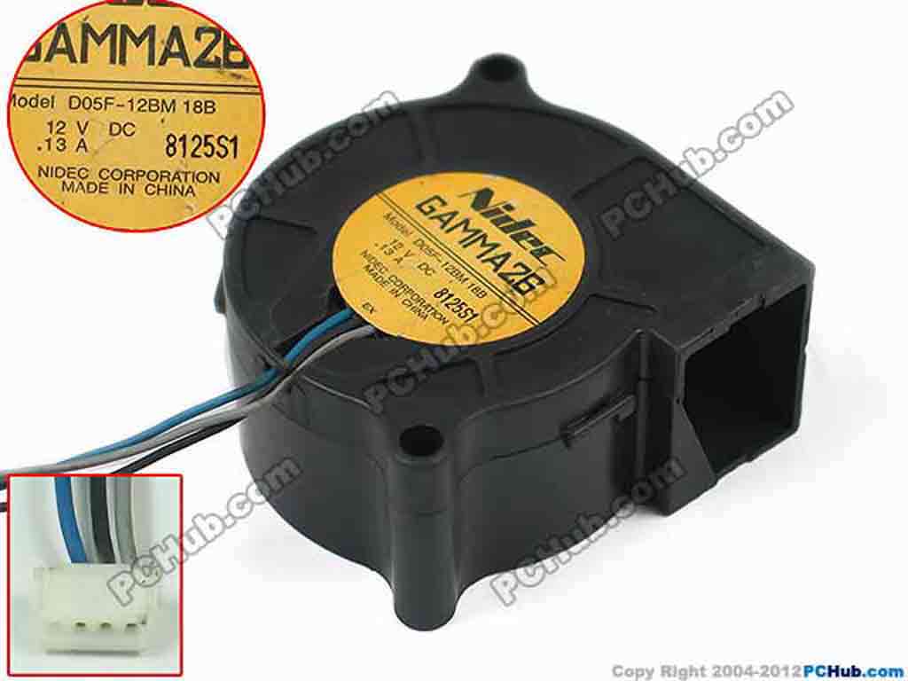 Nidec D05F-12BM Server - Blower Fan 18B, bw50x50x25mm, w50x 3x 3, DC 12V 0.13A,