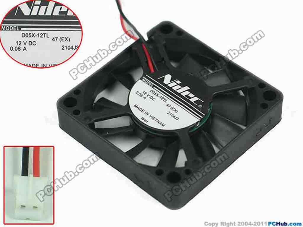 Nidec D05X-12TL Server - Square Fan 47(EX), sq50x50x10mm, w120x 2x 2, DC 12V 0.06A,