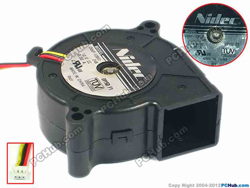 Nidec D06F-12BS1 Server - Blower Fan 24B, bw60x60x25, w45x3x3, 12V 0.33A