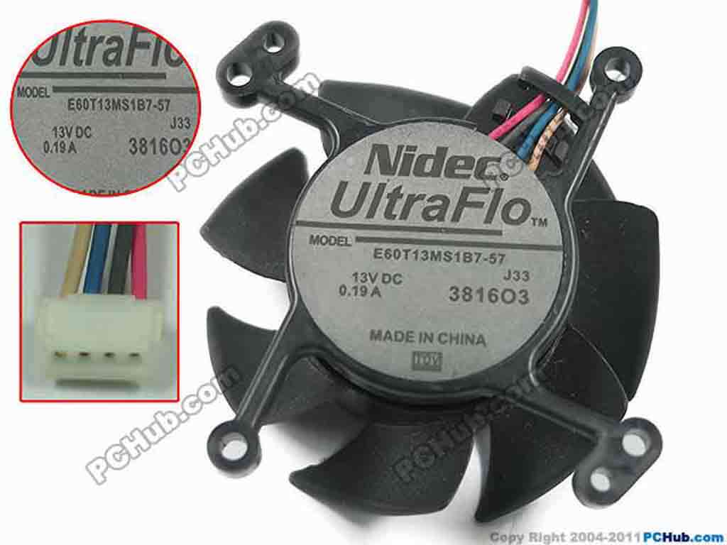 Nidec E60T13MS1B7-57 Server - Frameless / GPU Fan dia60x60x25mm, 4-wire, DC 13V 0.19A