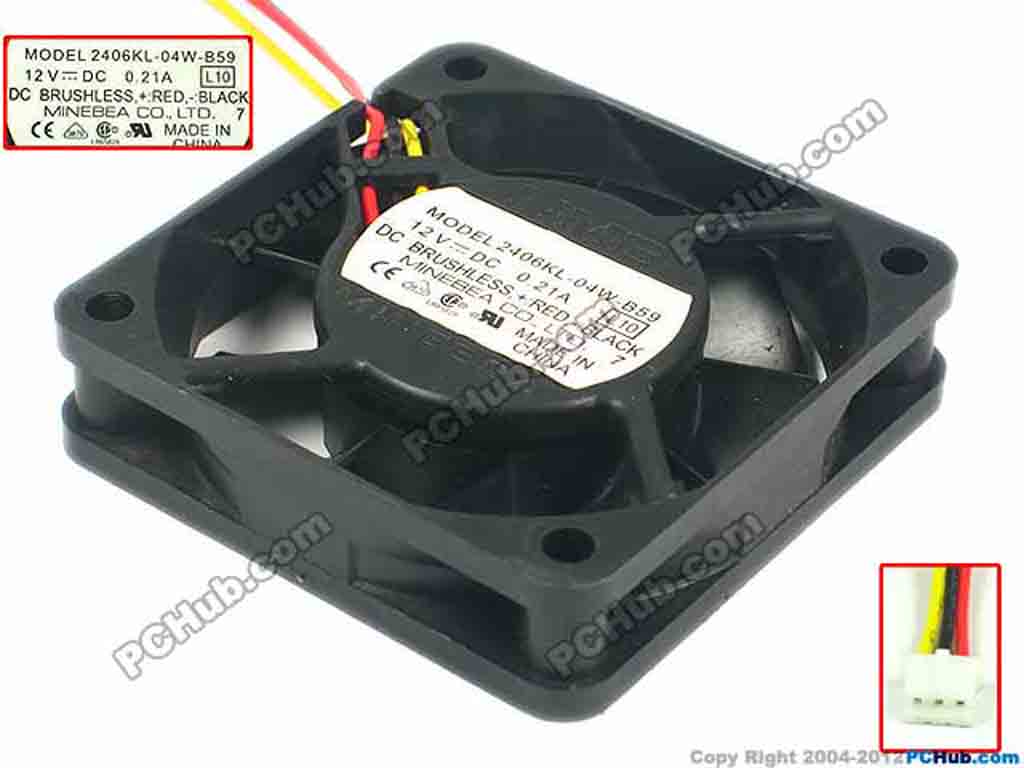 NMB-MAT / Minebea 2406KL-04W-B59 Server - Square Fan L10, sq60x60x15, w210x3x3, 12V 0.21A