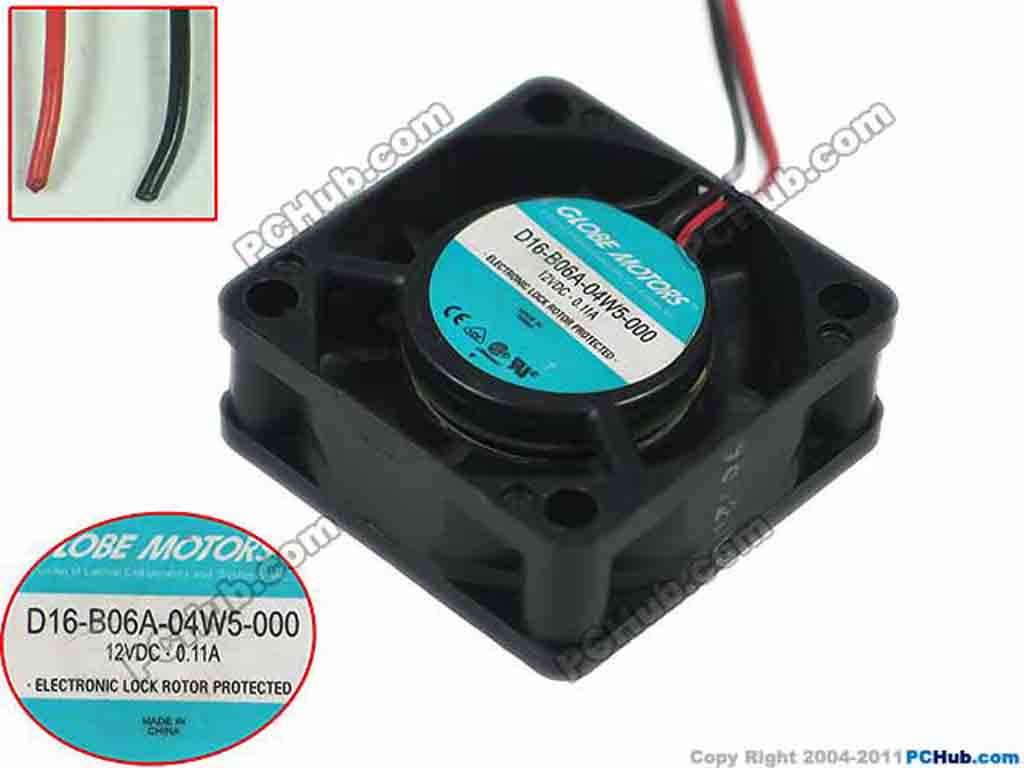 Other Brands GLOBE MOTORS Server - Square Fan D16-B06A-04W5-000, 12V 0.11A, 40x40x15mm