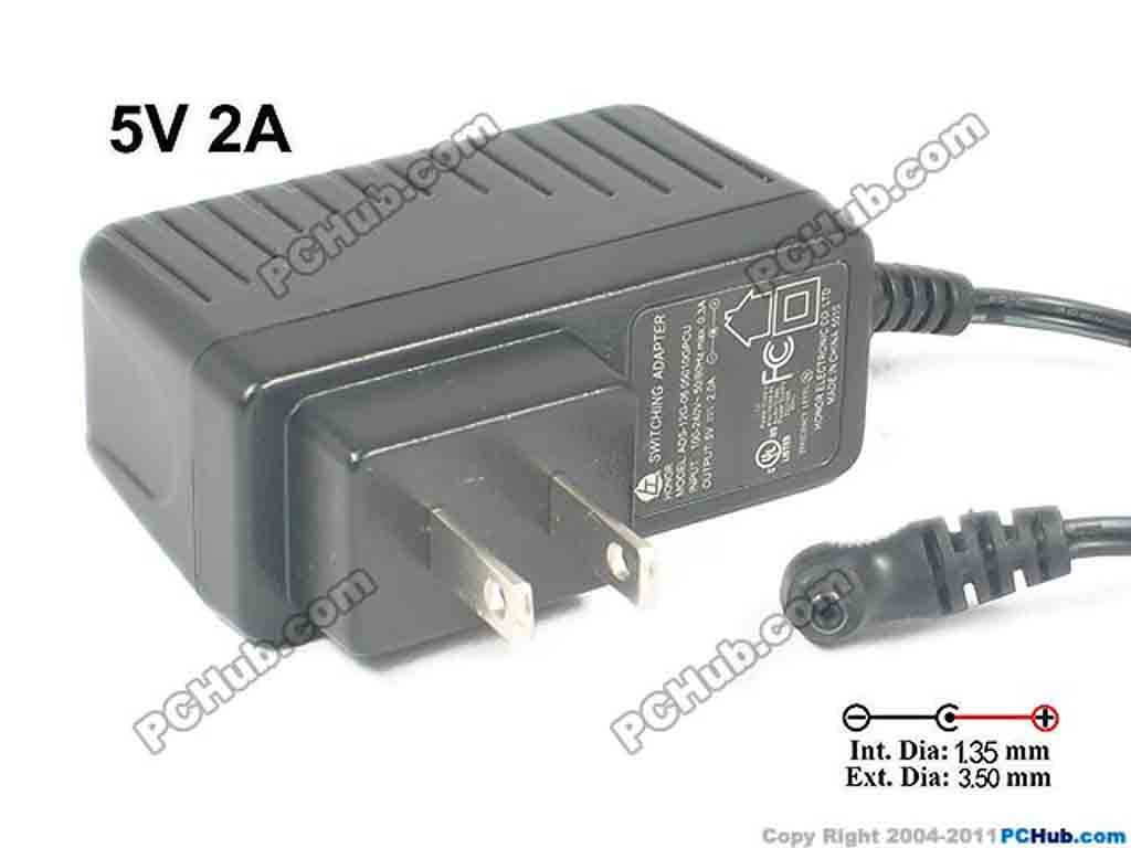 5V 2A, Barrel 3.5/1.35mm, US 2-Pin Plug
