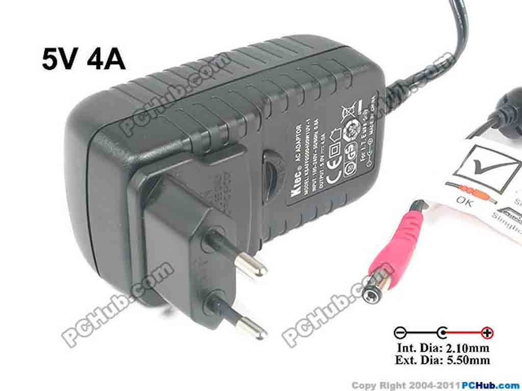 5V 4A, Barrel 5.5/2.1mm,EU 2-Pin Plug