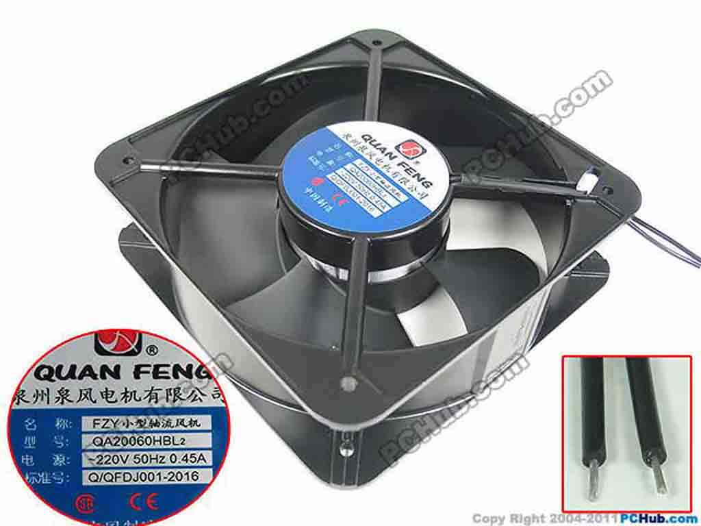 QUAN FENG QA20060HBL2 Server - Square Fan sq200x200x60mm, 2-wire, 220V 0.45A