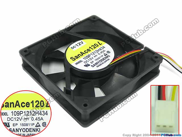 Sanyo Denki 109P1212H434 Server - Square Fan , sq120x120x25mm, 3-wire, DC 12V 0.45A