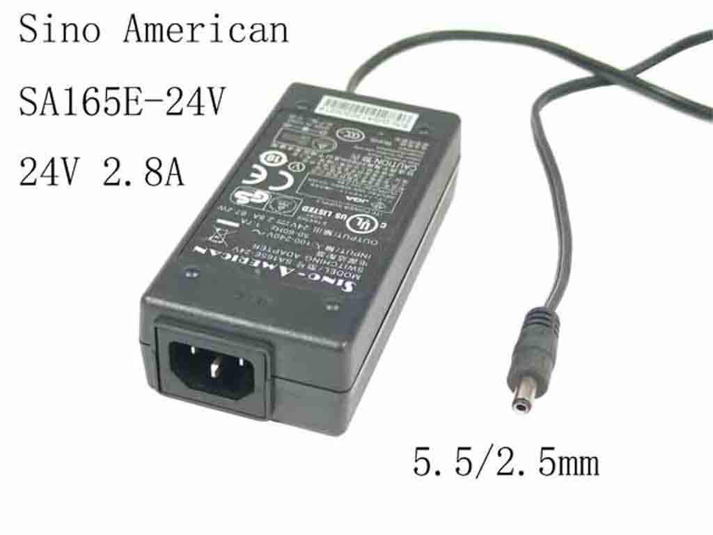 Sino American SA165E-24V DC 24V 2.8A 5.5x2.5mm IEC C14 AC Adapter 20V & Above