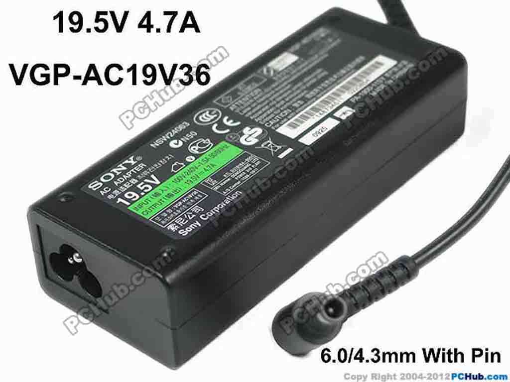 Sony Vaio VPCEG Series AC Adapter- Laptop 19.5V 4.7A, 6.0/4.3mm With Pin, 3-Prong, New