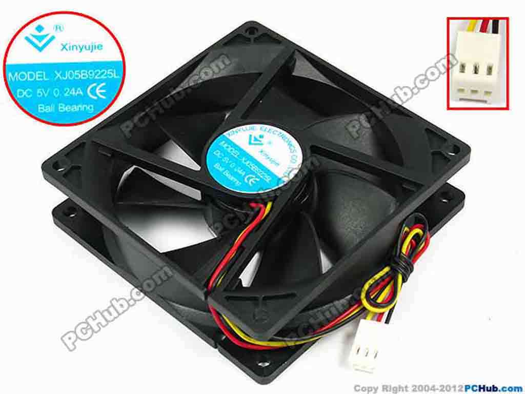 Xinyujie DC- Bearing OEM- Square Fan XJ05B9225L, w195x3x3, 0.24A