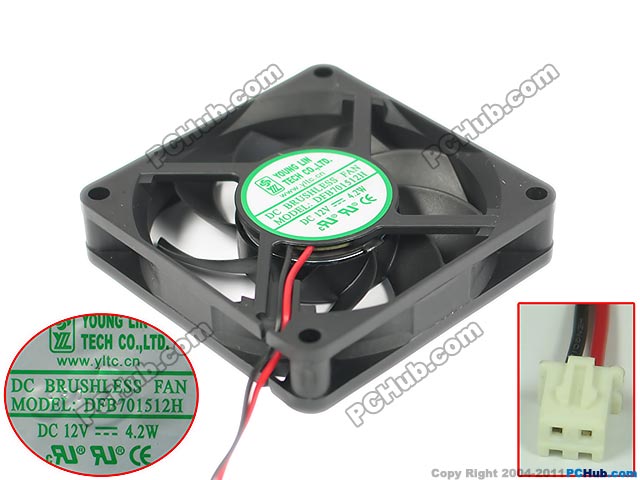 Young Lin DFB701512H Server - Square Fan sq70x70x15, w80x2x2P, DC 12V 4.2W