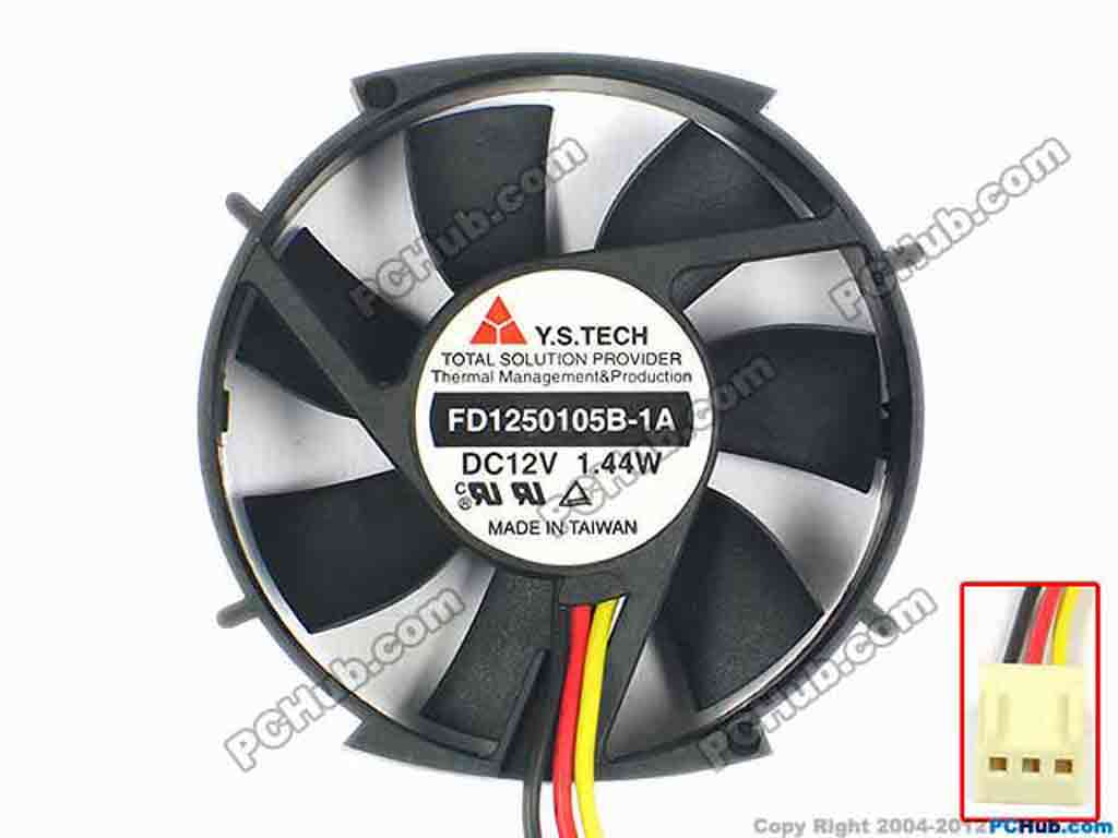 Y.S TECH FD1250105B-1A Server - Round fan sq50x50x10, 3-wire, 12V 1.44W