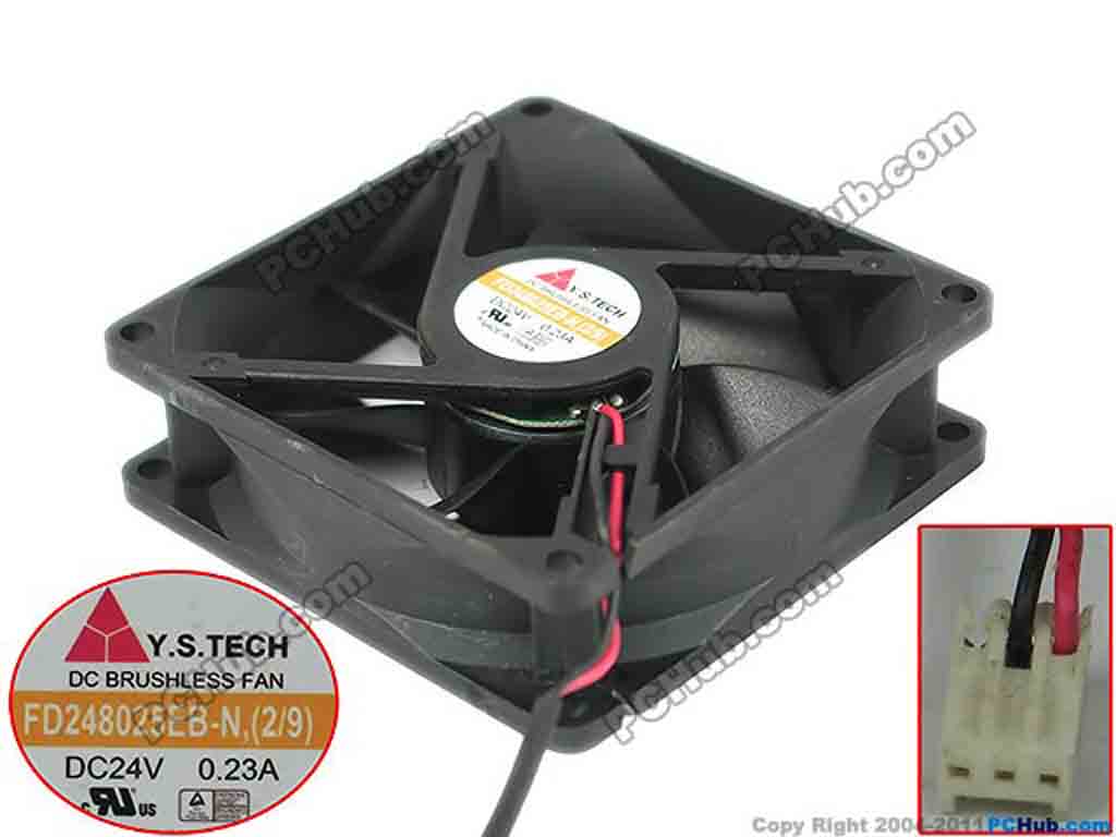 Y.S TECH FD248025EB-N Server - Square Fan DC24V 0.23A, 80x80x25mm, w80x2x3
