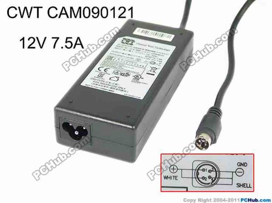 CAM090121 12V 7.5A, 4-Pin Din, 3-Prong