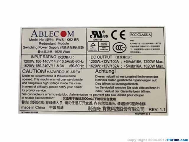 Ablecom PWS-1K62-BR Server - Power Supply 1620W, PWS-1K62-BR