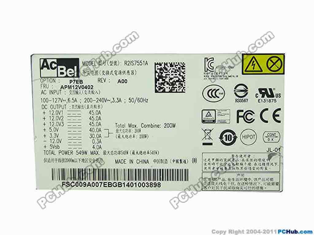 100-127V 6.5A, 200-240V 3.3A, 50/60Hz