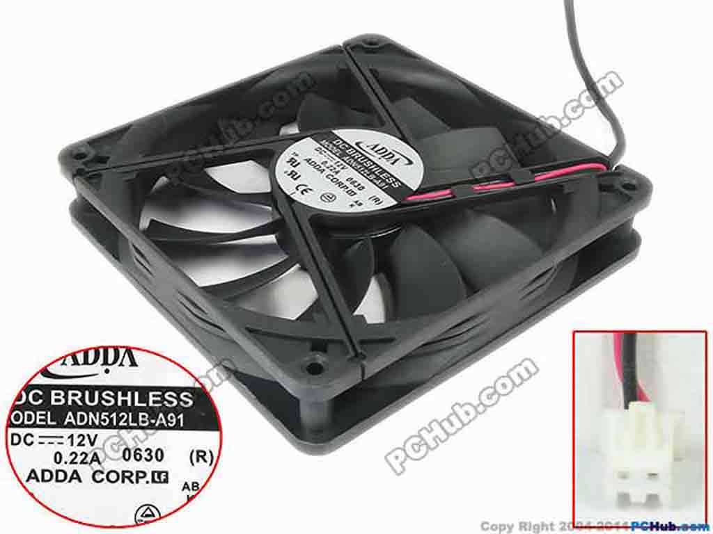 ADDA ADN512LB-A91 Server - Square Fan R, sq135x135x25, w135x2x2, 12V 0.22A