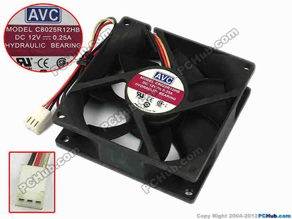 AVC C8025R12HB Server - Square Fan sq80x80x25, w220x3x3, 12V 0.25A
