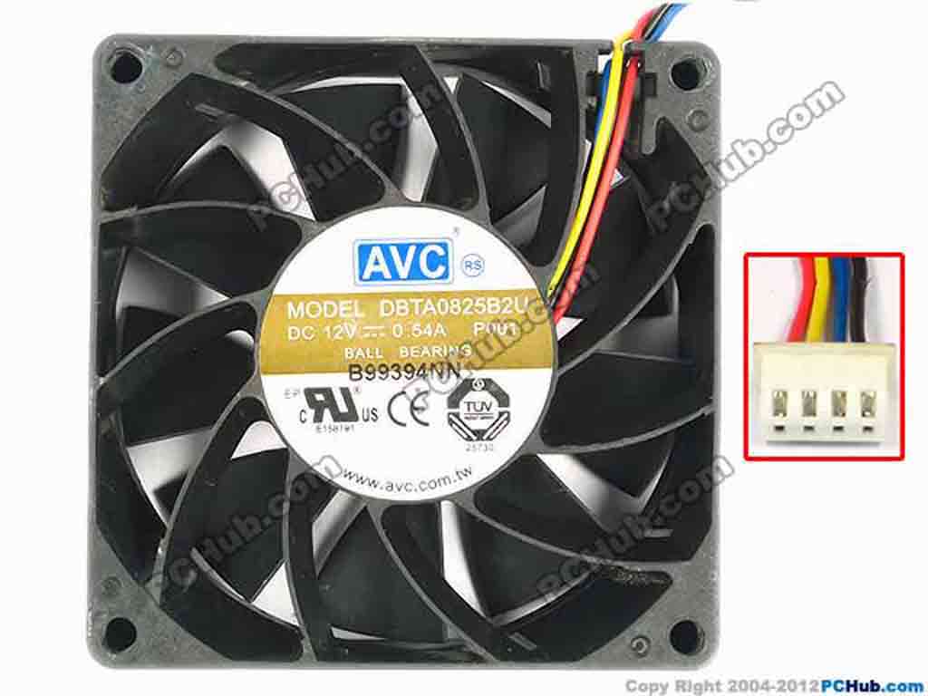 AVC DBTA0825B2U Server - Square Fan P001, sq80x25, w395x4x4, 12V 0.54A