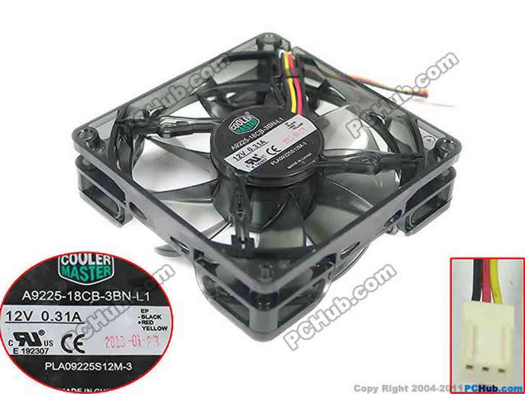 Cooler Master A9225-18CB-3BN-L1 Server - Square Fan PLA09225S12M-3, sq90x90x25, w25x3x3, 12V 0.31A