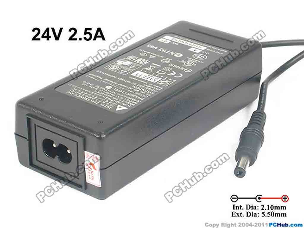 24V 2.5A, Barrel 5.5/2.1mm, 2-Prong