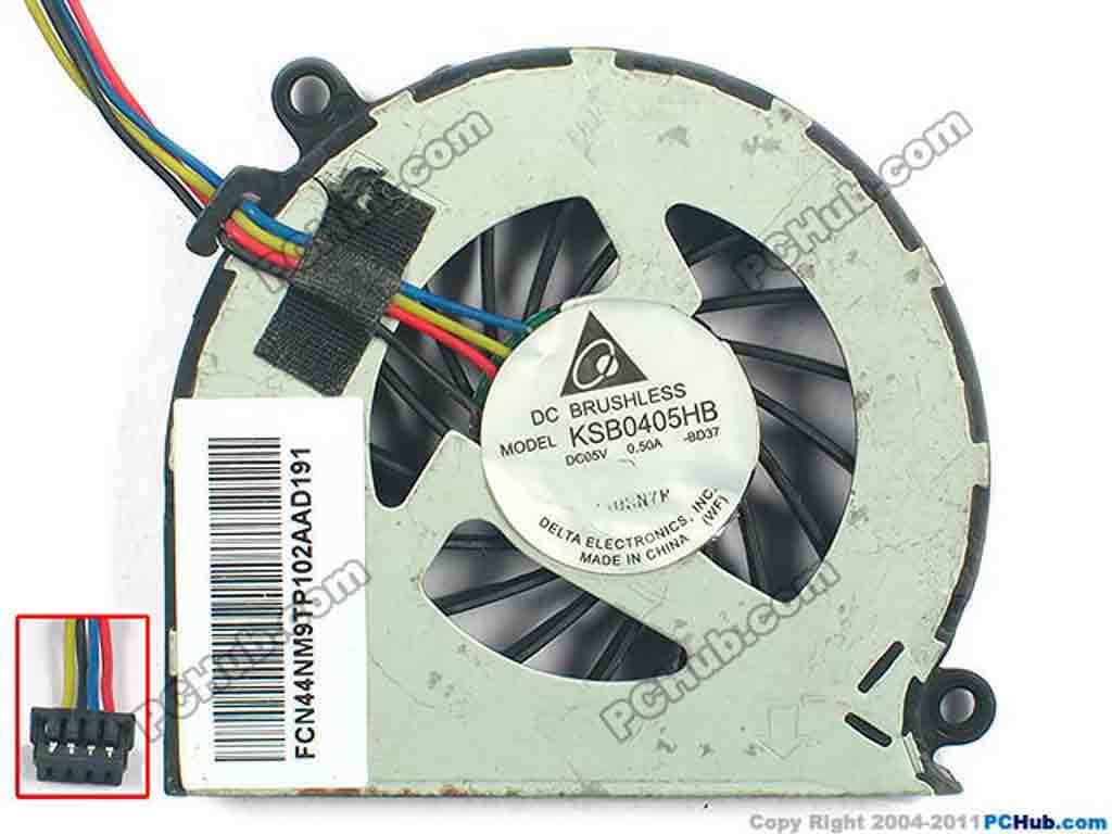 Delta Electronics KSB0405HB Cooling Fan BD37, 5V 0.50A, Bare fan