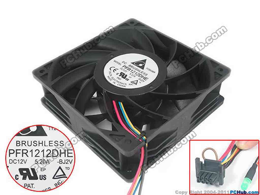 Delta Electronics PFR1212DHE Server - Square Fan BJ2V, sq120x120x38, 4-wire, 12V 5.20A