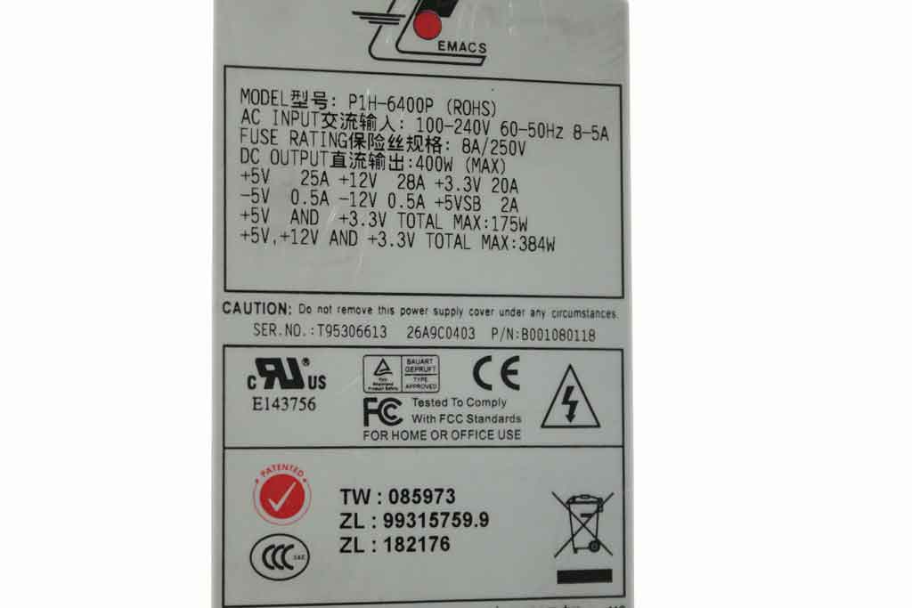 EMACS / Zippy P1H-6400P Server - Power Supply 384W, P1H-6400P, P/N:B001080215