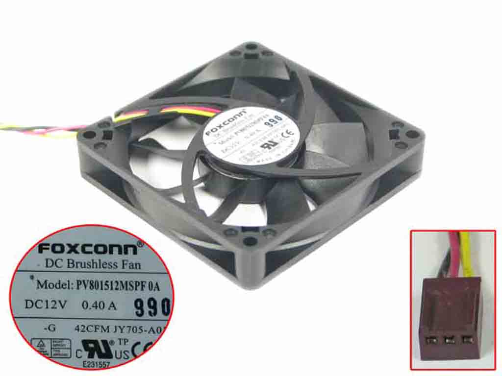 Foxconn PV801512MSPF0A Server - Square Fan sq80x80x15mm, w110x3x3, 12V 0.40A