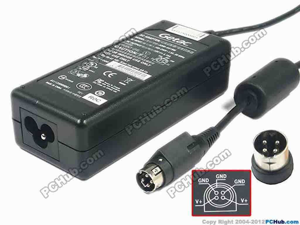 Getac ADM-6019M AC Adapter- Laptop 19V 3.16A 60W, 4-Pin P1&4=V+, 3-Prong