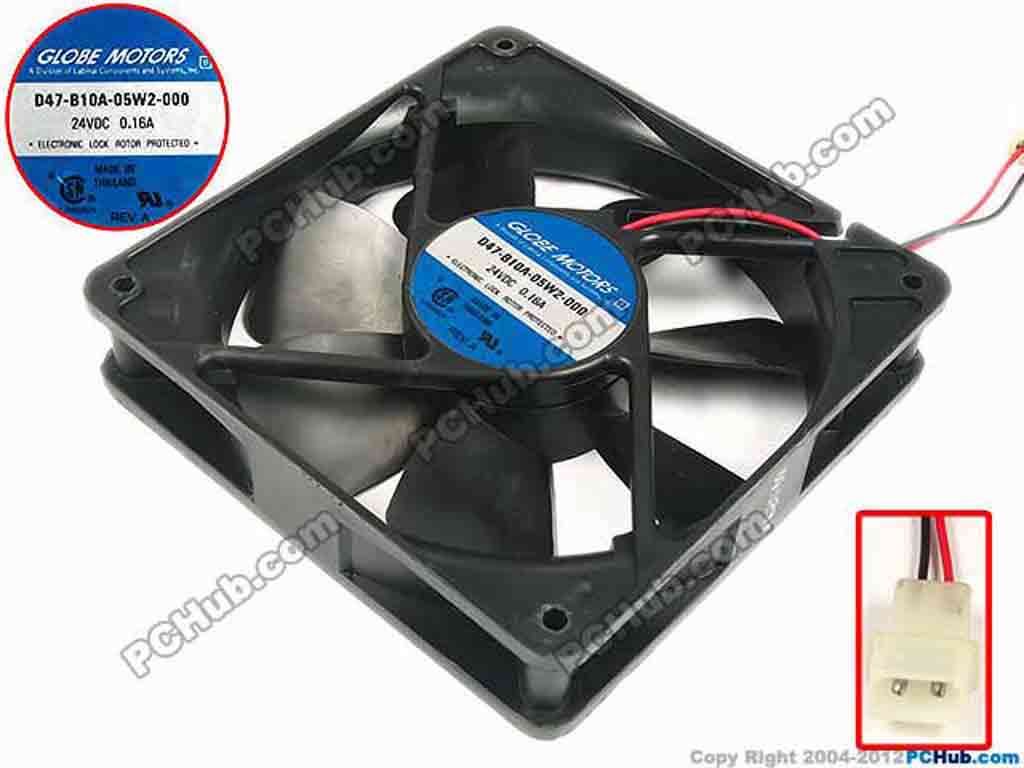 GLOBE FAN D47-B10A-05W2-000 Server - Square Fan sq120x120x25, w75x2x2, 24V 0.16A