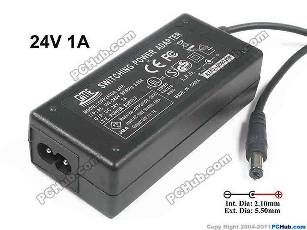 24V 1A, Barrel 5.5/2.1mm, 2-Prong