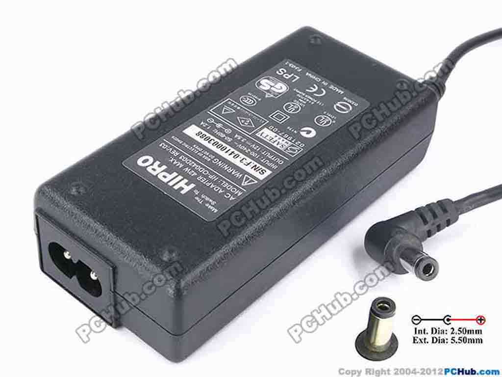 Model: HASU05F INPUT: 100-240V~ 1.8A, 50-60Hz OUTPUT: 12V 3.5A 42W Connecter size: Int. Diameter: 2.50mm Ext. Diameter: 5.50mm