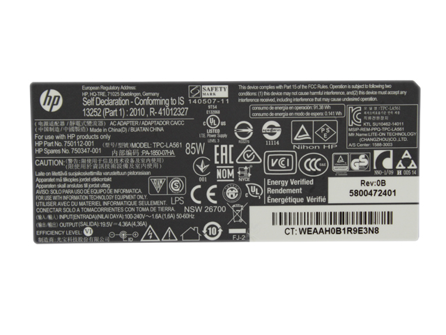 HP AC Adapter (HP) AC Adapter- Laptop TPC-LA56, TPC-LA561,670918-001, 750112-001, 750347-001, 708779-001, 708993-001, PA-1850-06HB,PA-1850-07HA