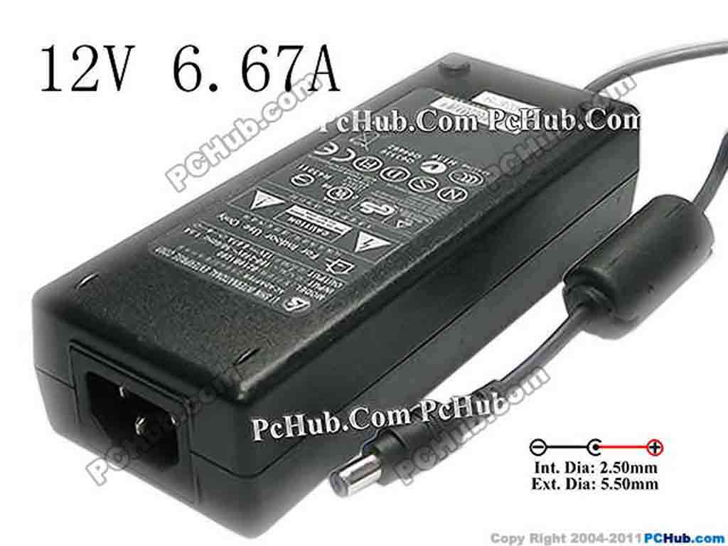 Li Shin 0219B1280 AC Adapter 5V-12V 12V 6.67A, Barrel 5.5/2.5mm, IEC C14