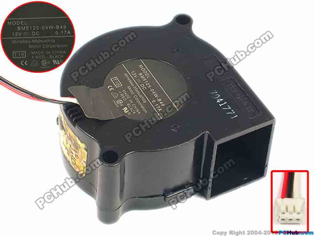 NMB-MAT / Minebea BM5125-04W-B49 Server - Blower Fan T16, bw50x25, w45x3x3, 12V0 .17A