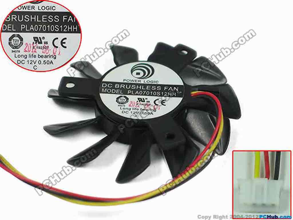 Power Logic PLA07010S12HH Server - Frameless / GPU Fan 12V 0.50A, W30x3x4, D65x10, Black